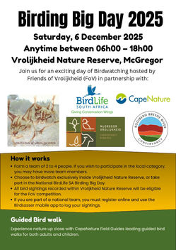 You are invited to a Birding Big Day at Vrolijkheid Nature Reserve Picnic Spot.